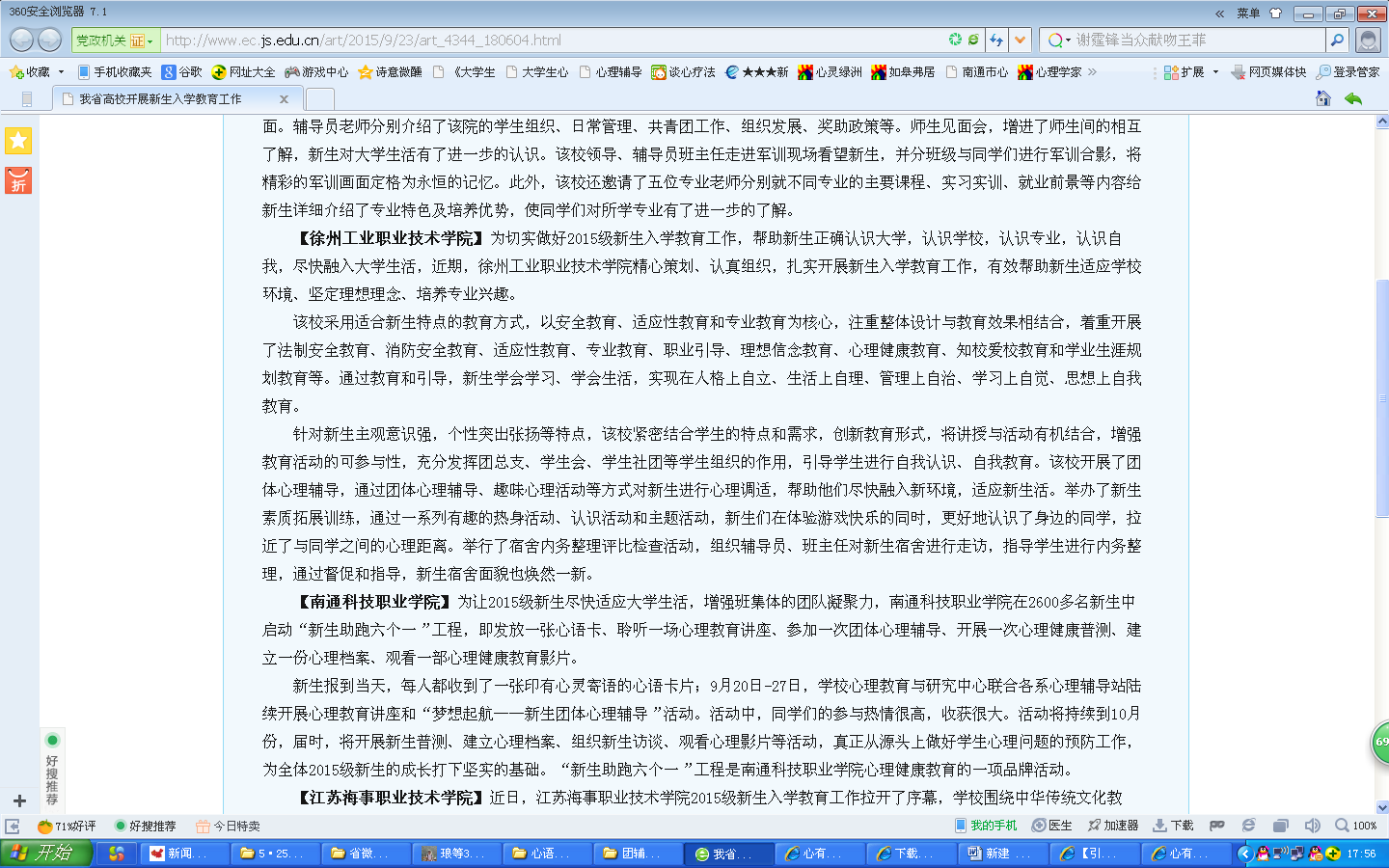 江苏教育网报道了我院新生六个一工程