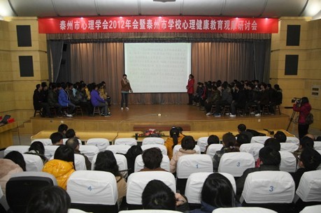 2012年12月15日,泰州市心理学会暨学校心理健康教观摩研讨会在姜堰市第二中学隆重举行。大会旨在搭建思想交流平台,探讨心理学热点话题,关注泰州市青少年心理健康成长。泰州市心理学会理事长李如齐,副理事长仲稳山、潘林元、倪亚兰,秘书长郭兆喜和姜堰二中的陈余根校长等在主席台就坐。
