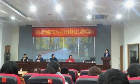2013年3月13日下午,苏州市心理学会临床与咨询心理学专业委员会成立大会,在苏州大学本部图书馆五楼学术报告厅召开。会议由苏州大学苏南大学生心理咨询中心刘稚颖老师主持。苏州市心理学会副理事长兼秘书长吴继霞教授出席会议并发表讲话,欢迎新专业委员会成立。出席本次会议的还有心理学会常务理事、大学生心理专业委员会王静主任和普济医院蒋正华副院长,心理学会理事、苏州娄葑中学李建军老师,以及苏州市心理学会部分会员。