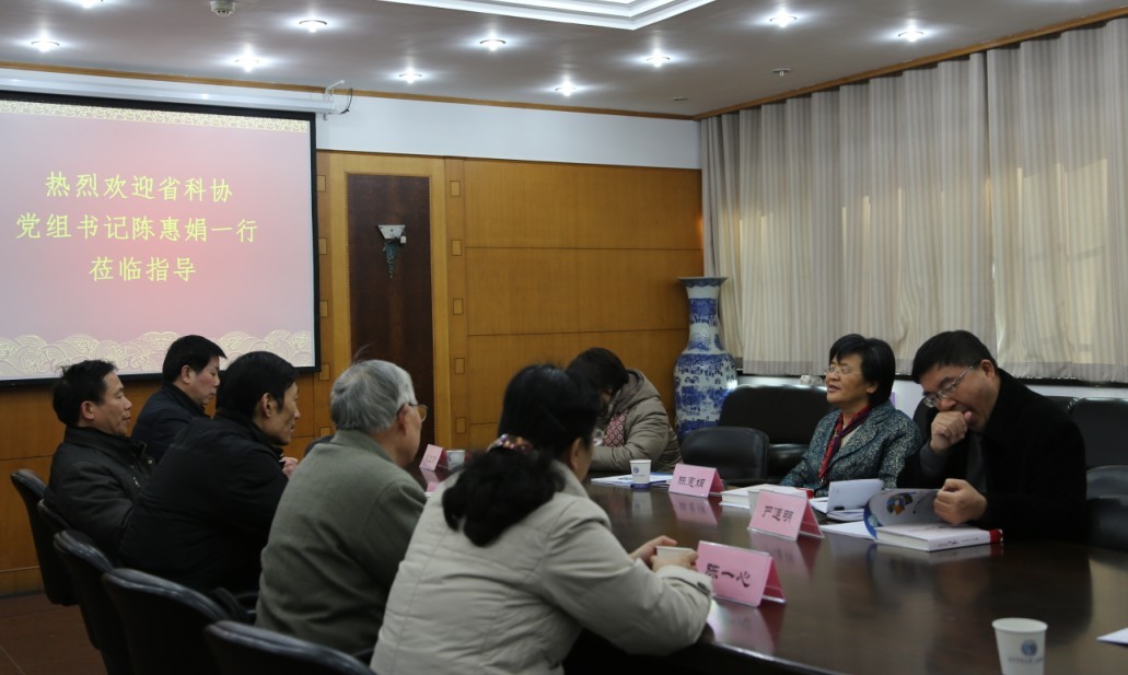 陈惠娟书记首先说明了此次调研的目的、内容和意义,她认为学会的立足之本是服务科技工作者、服务广大公众。党的十八届三中全会提出,创新社会治理,必须着眼于维护最广大人民群众的根本利益,最大限度地增加和谐因素,增强社会发展活力,提高社会治理水平,维护国家安全,确保人民安居乐业、社会安定有序。要改进社会治理方式,激发社会组织活力,创新有效预防和化解社会矛盾体制,健全公共安全体系。党的十八届三中全会给社会组织的发展带来了全新的机遇。这次来调研也是想听听江苏省心理学会能为政府做哪些事。